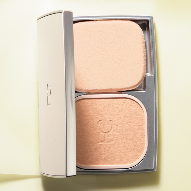 美容液成分を配合したパウダーをプレスしているので、しっとりとした肌あたりで、毛穴やシミもナチュラルにカバー。「“美肌色キープパウダーα”配合で、皮脂を吸っても変色しない明るい肌が続きます」(PR 中尾倫子さん)