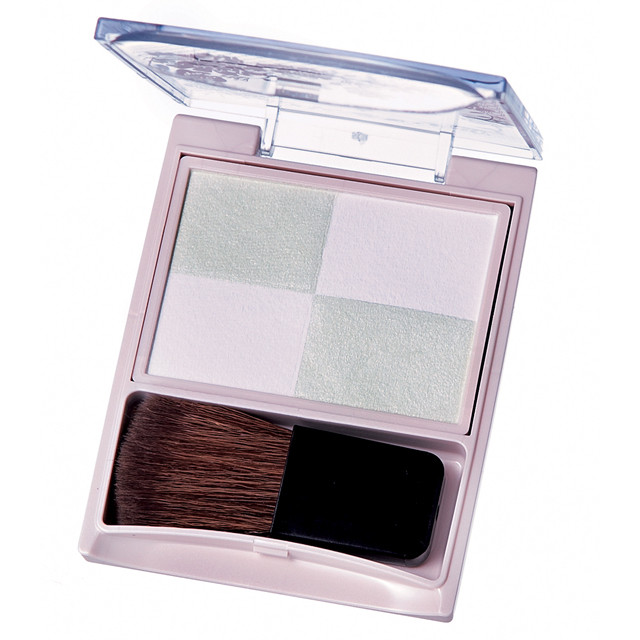 マスカラやアイライナーのにじみや色移りを防止する、下まぶた用の補整パウダー。透明感を演出するマットなホワイト&赤みやくすみをはらう2種のパール配合のライトグリーン。この2色を単色使いでも混ぜて使用してもOK。