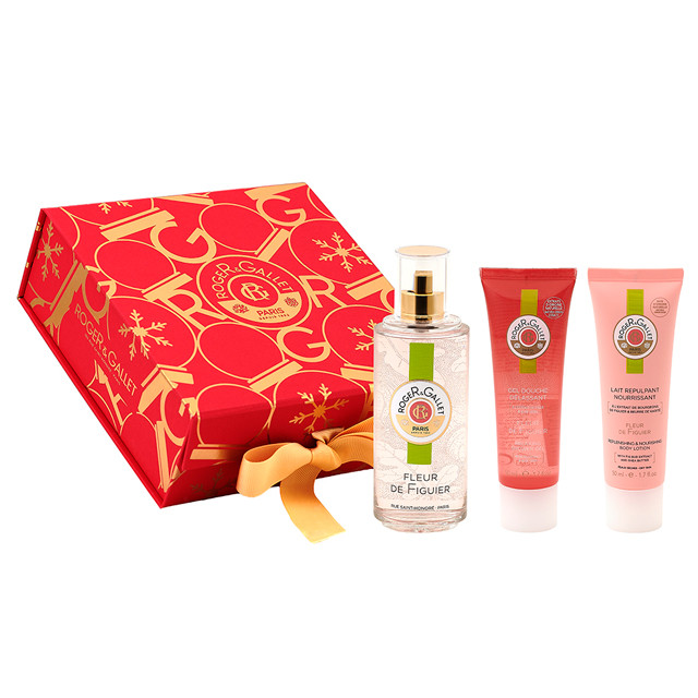 ほんのり甘くみずみずしいイチジクを中心に、グレープフルーツのほろ苦いアクセントを効かせたフローラルフルーティーの香りがあふれるコフレ。ふんわりと全身を包み込むスプレータイプのオーデコロンに、同じ香りのシャワージェルとボディローンがセットに。豊かな香りに包まれた心地よい毎日を!