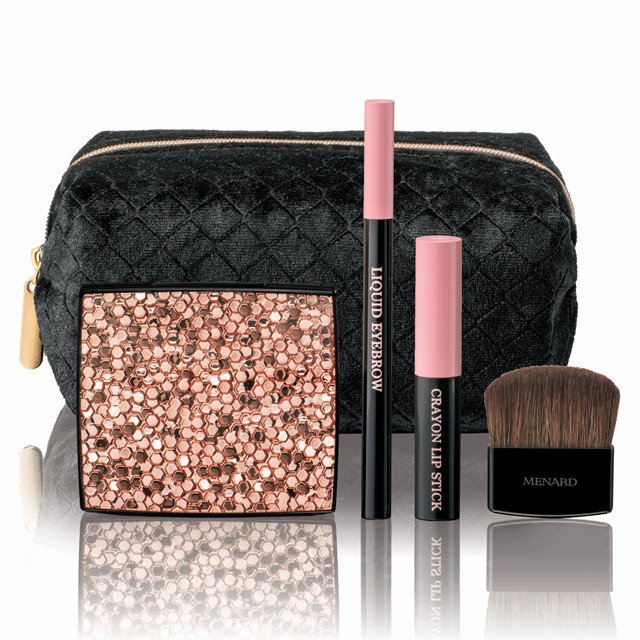 メナードから、ナチュラルな血色感とツヤ肌を引き立てる、メイクアップコフレが登場。素肌の美しさを強調するコーラルピンクのチーク、淡いブラックのリキッドアイライナー、ピンクベージュのクレヨンリップをセットに。シックなベロア調ポーチは、マチが広めの大容量タイプ!