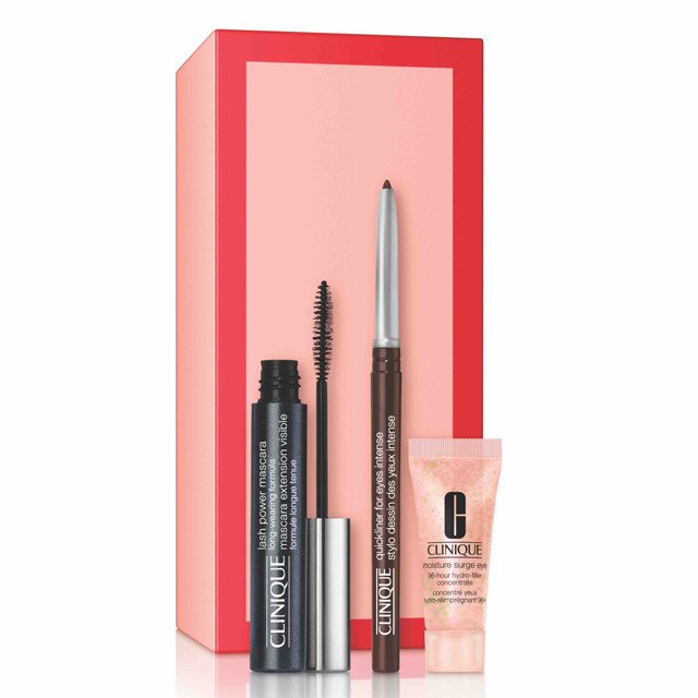 クリニークのベストセラーマスカラ「ラッシュ パワー ロング ウェアリング フォーミュラ」は、まつ毛一本一本をしっかりとらえるコンパクトブラシで、自然なロングまつ毛を叶えます。汗や涙でにじみにくいのに、ぬるま湯で簡単オフできるのも人気の秘密。そのマスカラ現品に、チョコレートカラーの繰り出し式ペンシルアイライナーと、目元に潤いを与えるアイケア美容液をセット。