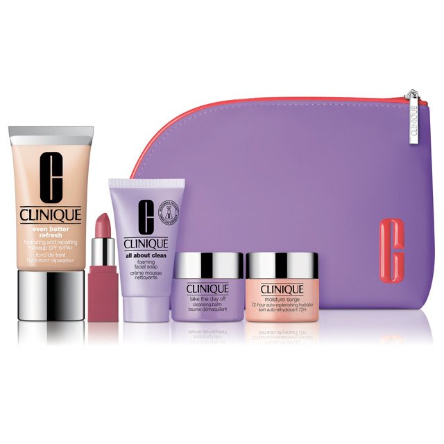 シミ、くすみなどの肌悩みを瞬時にカバーして、均一で美しい肌トーンに仕上げる人気のファンデーション「イーブン ベター リフレッシュ メーク アップ」をはじめとする、お好みのファンデーションもしくはベースメイクアイテムを一品以上の購入で、ベストセラーアイテムのミニサイズがセットに。ジェル状クレンジング、肌に潤いを与えるシリーズ「モイスチャー サージ」のクリーム、鮮やかに唇を色づけるリップと人気アイテムを試せるチャンス!