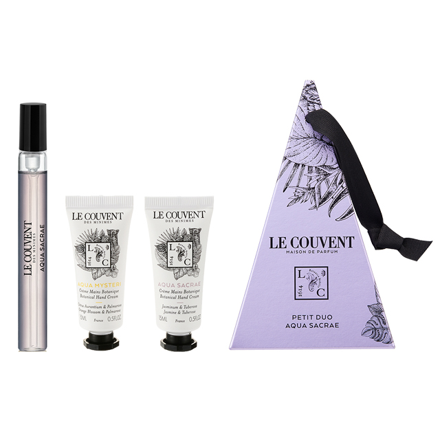 ミニサイズのコロンと、ハンドクリームをセットにしたコフレが登場。香りは、フレッシュなバラの香るアクアパラディシ、ジャスミンとチュベローズをブレンドしたアクアサクラエの2種。保湿効果のあるシアバターや植物オイルを配合したハンドクリームで、指先まで抜かりないケアを!