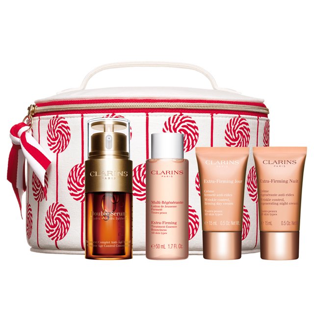 20種類以上の植物由来成分が配合された、オイル×ウォーターのダブルフォーミュラで構成されたエイジング美容液「ダブル セーラム EX」の現品がメインのスキンケアキット。加齢やストレス、外的刺激によって深刻化する悩みに応えて、弾むようなハリを与える「ファーミングEX」シリーズの化粧水と日中用と夜用クリームのミニサイズをセット。オリジナルのバニティポーチもついた充実感たっぷりのコフレです。