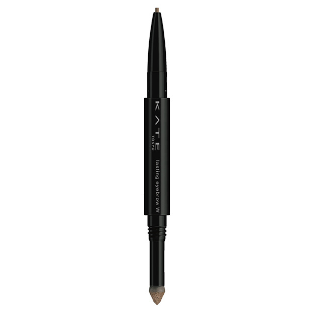 繊細に描けるスリム芯ペンシルとパウダーチップのWエンド。ダークなアッシュブラウンで目元印象を引き締めて。
