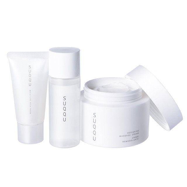 ブランドの代表的なスキンケアメソッド“顔筋マッサージ”。これの専用マッサージクリーム(200g現品)に、拭き取り用化粧水&洗い流さないタイプのスペシャルケアマスク(各ミニサイズ)がセット。引き締まった肌で、表情までスッキリ!