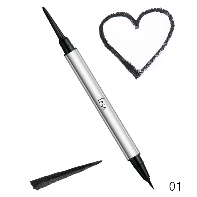 1.5mmの極細ペンシルと繊細なラインを描けるリキッドのWエンドライナー。01はブラック、02はナチュラルな黄みブラウン。