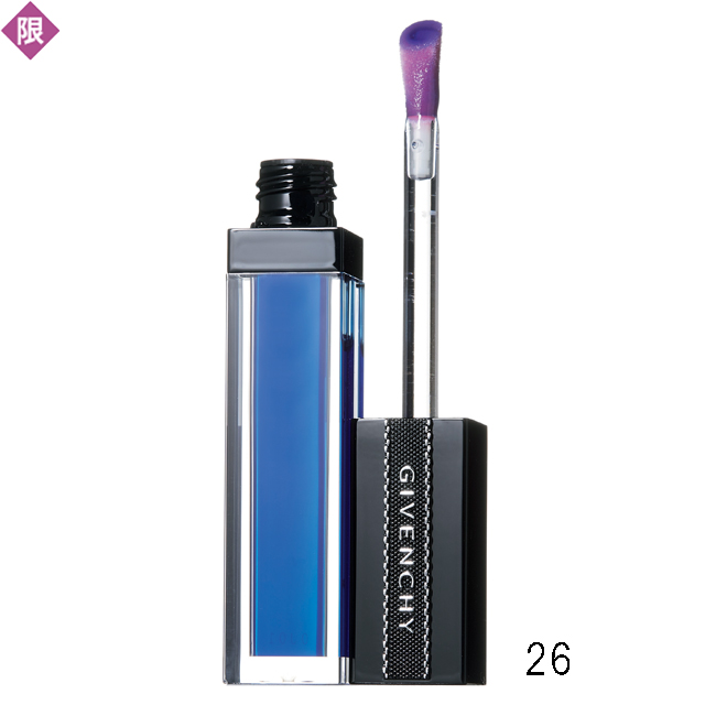唇のpHで色が変わる。25はパープルピンクからフレッシュなピンクへ、26はコバルトブルーからローズピンクにチェンジ。