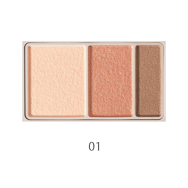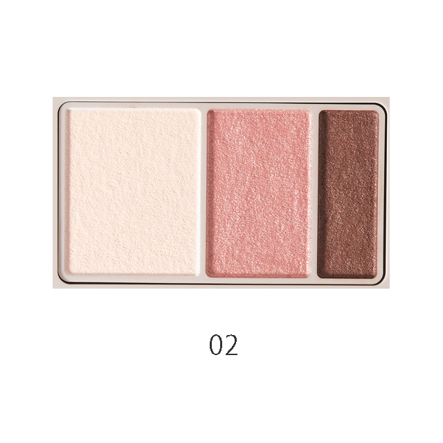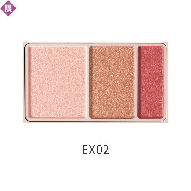 ツヤ、立体感、陰影を引き立てる3色3質感がセットに。目元をケアしながら、目周りを彩る。EX01はこなれ感のあるマゼンタ系。