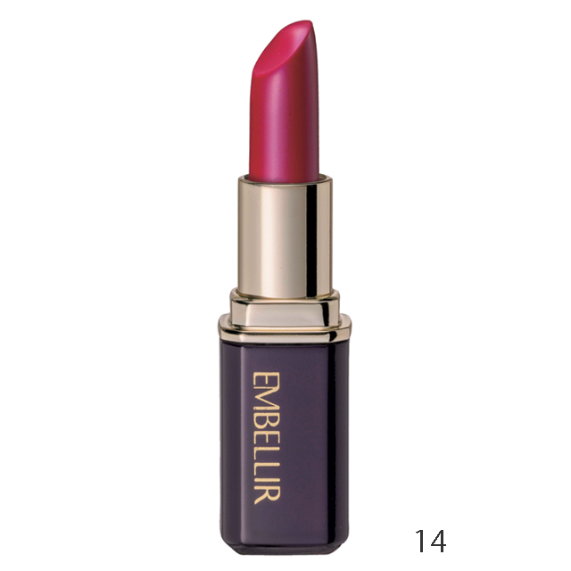 潤いとハリのある立体美を演出するエイジングケア発想のリップ。14は華やかなピュアローズ、26Fはきらめくパールピンク。