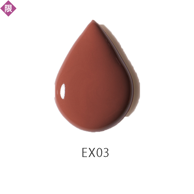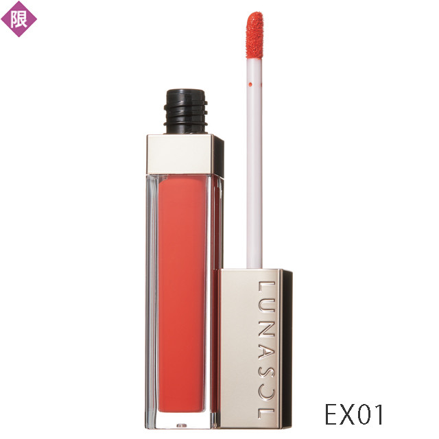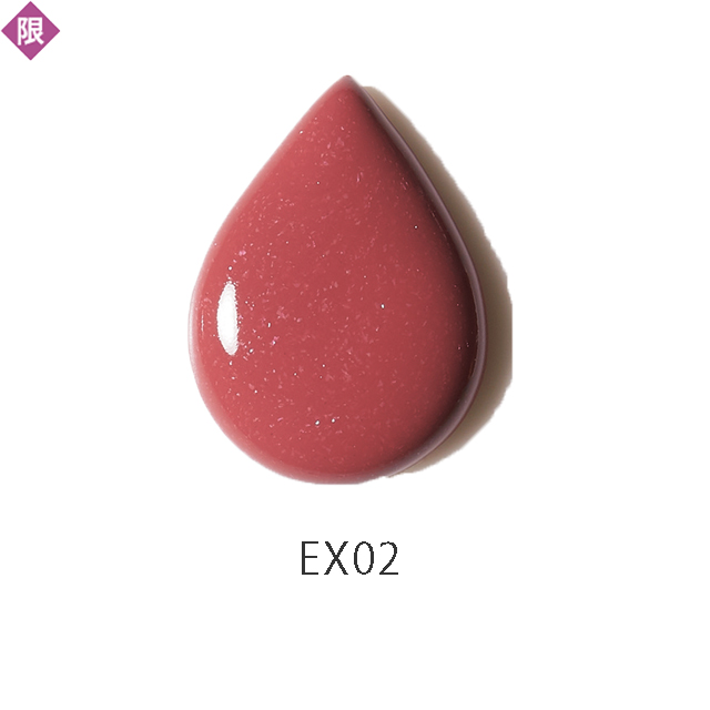 マット質感ながらウォーターインオイル処方で唇がリッチに潤う。EX01は健康的なオレンジ、EX02はエレガントなアメジスト。