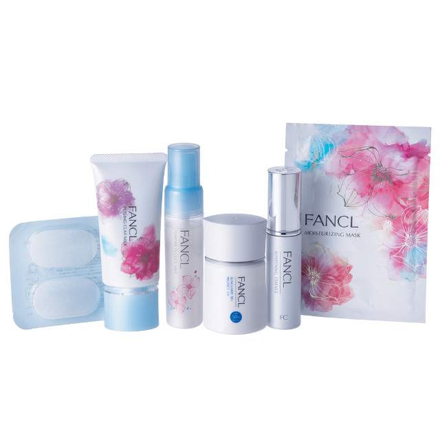 美白美容液(現品)、日焼け止め(ハーフサイズ)、シートマスク(3枚)の定番品に、ここでしか手に入らないミスト状化粧液や洗い流しパック、部分用トリートメントマスク(3包)の計6アイテムを詰め込んだキット。美白・UVケアに加えて、長期間のマスク生活による肌ダメージまで丸ごとケア!