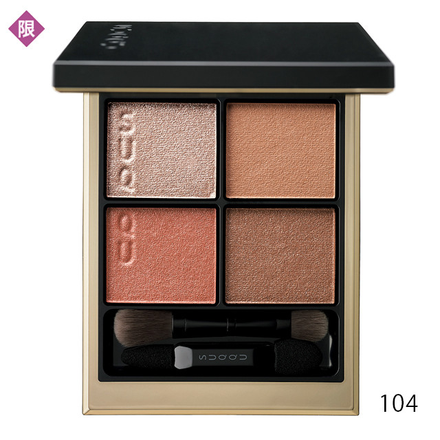 パール、マットなど4種の質感をセットしたパレット。104はベージュ×オレンジ系、105はマットとパール、異なる2種のピンク入り。