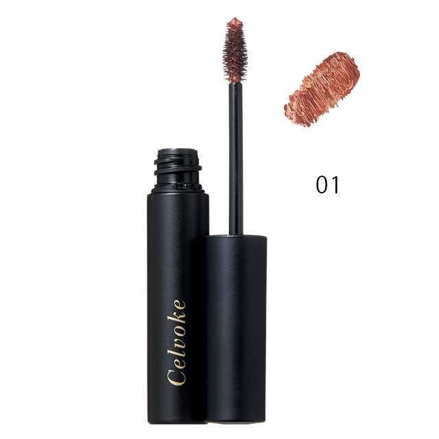 レッドニュアンスが程よい抜け感を演出するカラーマスカラ。01はヘルシーな赤みブラウン、EX01は軽やかさをプラスするくすみピンク。