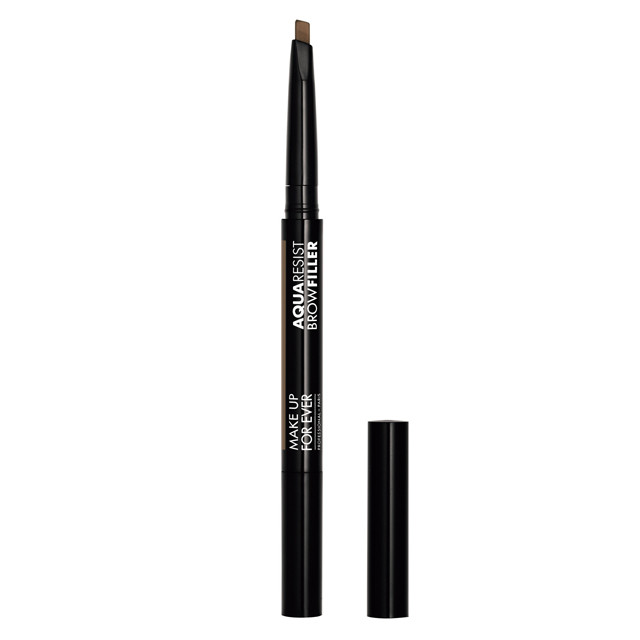斜めカットを施した平形芯により細部へのフィット感とソフトな色づきを実現。優しい印象の眉に。反対側にはスクリューブラシもセット。