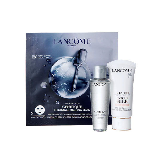 “UV エクスペール”シリーズの全5種の中から、好みの1種(ジャンボサイズを含む)を購入。すると、売り上げNo.1化粧水のミニサイズ(50ml)と、美容液1本分の有用成分を閉じ込めたフェースマスク(1枚)がついてくるお得なコフレ。肌の透明感を極めたい人は要check!