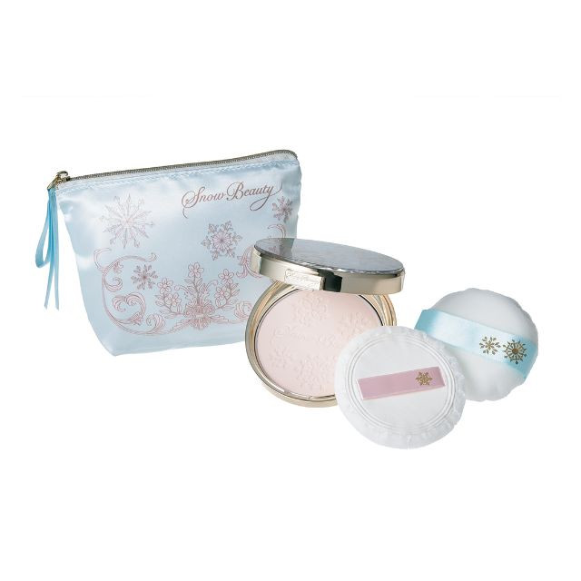 メイク直しやスキンケアの仕上げとして使用できるスキンケアパウダー「スノービューティー」。今年はパリに降る雪をイメージした、金色の唐草模様とパステルブルーが織りなすロココ様式のデザイン。新たに美白有効成分“4MSK”を配合した点もポイント!