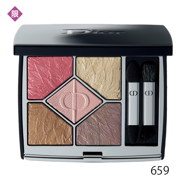 偏光パールの光沢が華やかな5色パレット。659はルビーレッドやプラムブラウン、プラチナムグレーで、洗練された印象の目元に。