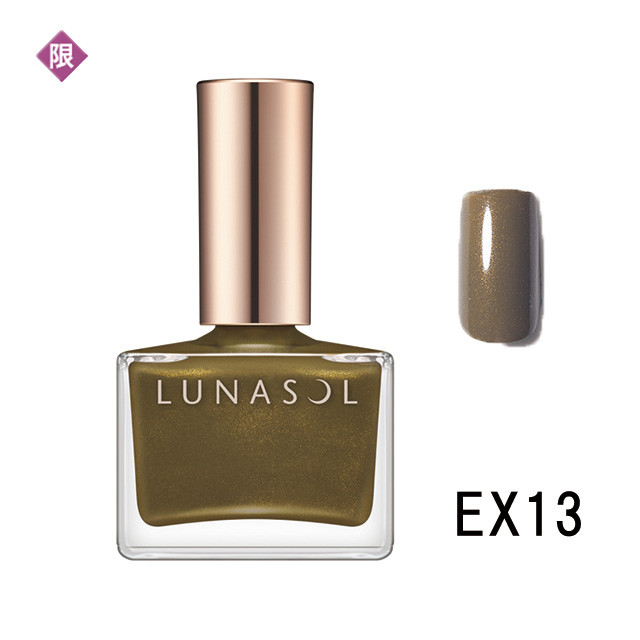均一な塗り心地で鮮やかに発色。EX13は繊細なゴールドパールがきらめく深いグリーン、EX14は揺らめいて輝くコーラルオレンジ。