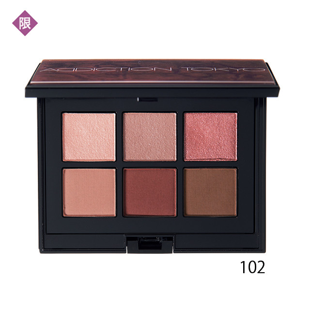 パール、ラメ、マットの3質感で繊細な表情を演出するアイカラーパレット。102はレッド~コーラル系、101はオレンジ~ベージュ系。
