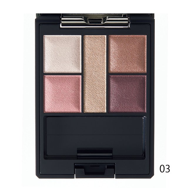 透明感のある美しい色とツヤ、きらめきで繊細な立体感を生み出すアイパレット。03はピンク系。