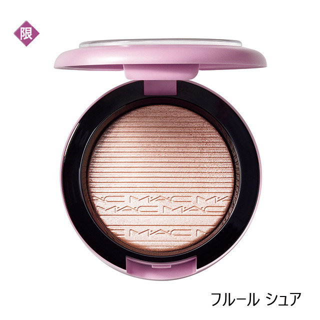 肌に美しいツヤと輝きを与えるハイライター。フルール シュアはホワイトゴールド、ロイヤル フラッシュはチークにも使えるプラム色。