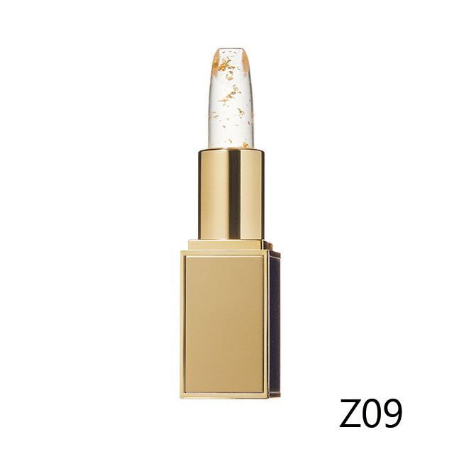 ゴールドフレークを閉じ込めたクリアカラーのリップ。Z09は唇に重ねると品の良いツヤ感を与えながら、軽やかなピンクに色づける。