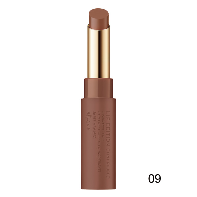 自然な艶めきを帯びた、ほんのりマットな唇へ。04は温かな赤みベージュ、07はリラックス感漂うチョコレートブラウン。09はグラマラスなブラウン、10はチャーミングなローズ。