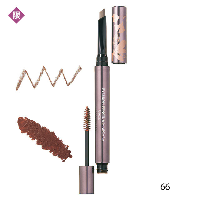なぎなた形ペンシルで眉を描き、マスカラで毛流れを整えれば、ふんわり眉が完成。皮脂や汗、こすれに強い。66はディープブラウン。