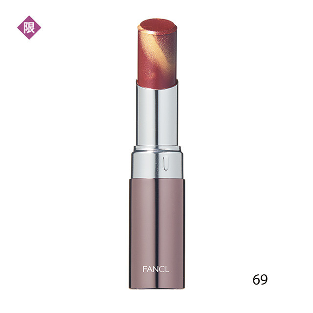 高発色で色もちが良く、保湿力も抜群。69はゴールドパールがマーブル状に入った、こっくりとした黄み寄りのレッド。