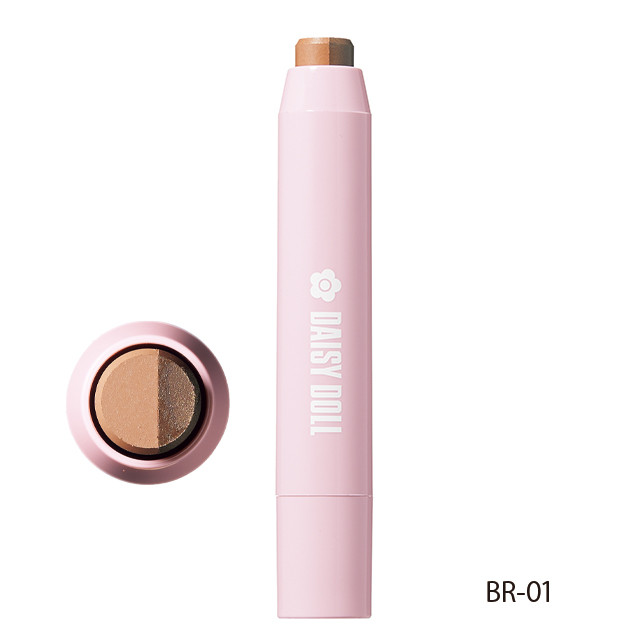 1本に2色をセットしたアイシャドウスティック。BR-01は、ひと塗りでコーラルベージュとココアブラウンのグラデーションが完成。