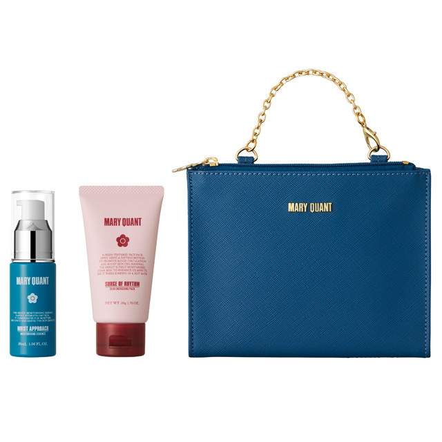 肌の乾燥をケアしたい人は、美容液「モイスト アプローチ」がメインのコフレがおすすめ。3種のセラミドをナノ化したカプセルに配合したことで、角質層の隅々まで保湿。しっとりとした肌に導きます。コラーゲン代謝と血液循環を促進し肌環境を整えるパック「サージ オブ リズム」と、ネイビーのポーチもセット。