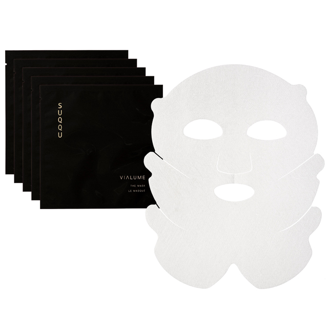 2020年に誕生したSUQQU最高峰のエイジングケアライン「VIALUME(ヴィアルム)」。セラム、ローション、クリームの3品で最上級のツヤ肌を育むスキンケアシリーズの、クリスマス限定濃密シートマスクは、ツヤの5大要素<潤い><ハリ><透明感><明るさ><キメ>を同時にケアし、独自開発の保湿成分「VIALUMEコンプレックス」が美しいツヤ肌へと導く。後肌はこっくりとしたクリームを肌にまとったように、しっとりと潤います。頬、あごと2段階で引き上げる大判タイプのシートで、顔周り全体をケアできるのも嬉しい!