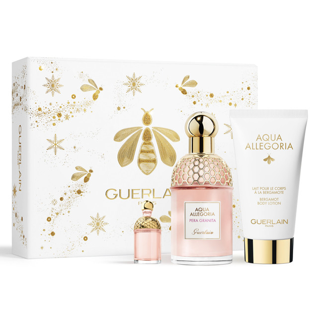 ゲランのベストセラーフレグランス「アクア アレゴリア ペラ グラニータ」を存分に堪能できるフレグランスコフレが登場。ほろ苦いベルガモットに、みずみずしいグレープフルーツやレモンが加わったフレッシュな香り。フレグランスの現品に、同じ香りのミニサイズとベルガモットが香るボディローションがセットになったコフレです。