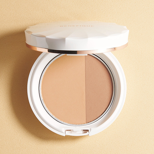 今季誕生のエイジングケアラインから、おしろいにも使えるパウダリーが登場。月見草オイルを配合した2トーンのパウダーが、ナチュラルマットなハリ肌を演出。「濃色を輪郭に沿って入れると立体的な印象に」(PR 山口夏苗さん)
