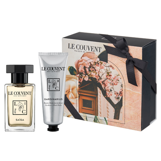 「シンギュラーオーデパルファム」シリーズの中でも人気の香り「サイガ」と、7種類の植物成分を配合したハンドバームのセット。「シンギュラーオーデパルファム サイガ」は、エレガントな気分に導くフルーティフローラルの香り。ハンドバームはこっくりとしたリッチなテクスチャーで、潤いあふれるなめらかな手肌をキープします。