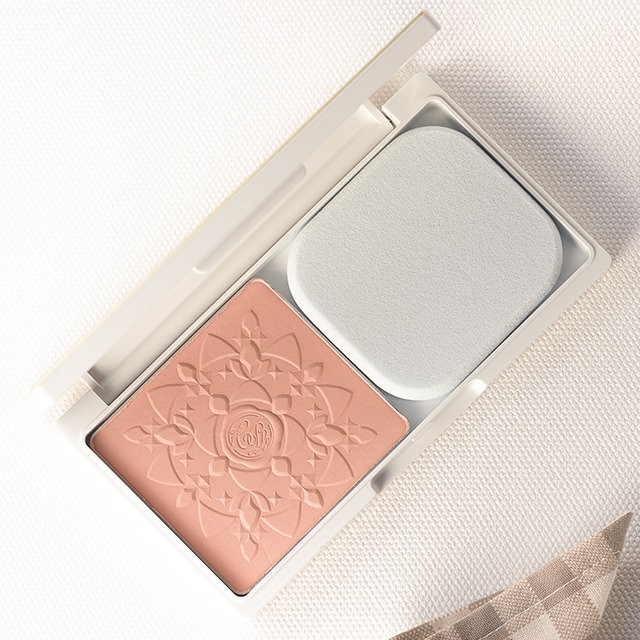 スフレのように軽いつけ心地で、自然なツヤ肌に。「両面タイプの専用パフがおすすめ! 軽くカバーしたいときは起毛面を。スポンジ面なら、しっかりカバーできます」(PR 當眞竹子さん) ●この商品のベストマッチ下地はこちら