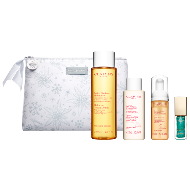 自社農園やアルプスのパートナー農園で栽培されたハーブなど、こだわりの素材から抽出された成分を配合した、肌本来の美しさをかなえるクラランスの「ベーシック」シリーズ。乾燥や摩擦などで敏感になってしまった肌を癒すクラランスのベーシックケアシリーズの中から1品購入すると、クレンジング2種のミニサイズがついてくるキットが登場。肌フローラのバランスを保つ泡洗顔料「トータル フォーミング クレンザー」とクリーミーな質感で肌を優しく包み込む「ベルベット クレンジング ミルク」のミニサイズがセットに。さらに、みずみずしく唇を潤しながら鮮やかな発色をかなえる人気のリップオイルの現品もついてきます。