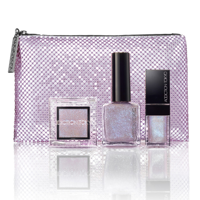 アディクションの2021年のクリスマスコフレに、スパークリングカラーがまばゆいメイクアップキットが登場。「ムーンリバー」は、月光を思わせる青みのバイオレットカラーのキット。カラーバリエーションが豊富なことで人気の単色アイシャドウ「ザ アイシャドウ」、ブルーパールが輝き、ぷっくりとした唇と高いケア効果をかなえる「リップ オイル プランパー」、つややかな光沢の中にブルーラメが煌めくスパークルの「ザ ネイルポリッシュ」の3点がセットに。スパンコールの輝きがクリスマス気分をより高めてくれる、華やかなポーチつき。