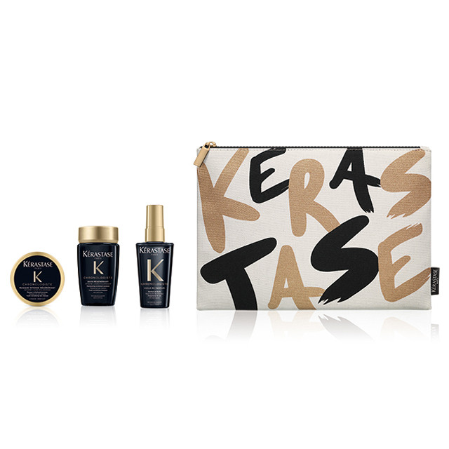 ケラスターゼの最高峰ラインとして人気の「クロノロジスト」シリーズが、2021年のクリスマスコフレに登場。最新テクノロジーを駆使し、頭皮の乾燥や弾力低下、髪のツヤ減少やダメージなど、あらゆる髪や頭皮の悩みに着目。永遠に美しい髪を目指すヘアケアラインです。髪にツヤを与え健康的な印象に導くスカルプ&シャンプー、髪の表面をなめらかに整えケアしごわつきを抑えるヘアマスク、髪のダメージ補修をしながらまとまりやすい髪に導くヘアオイルの3点がセットに。
