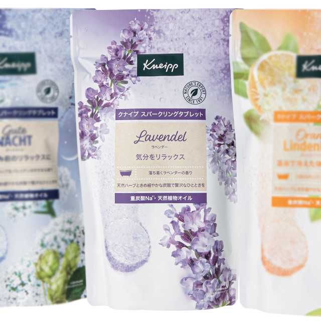 美肌効果や血行促進効果をもつ、重炭酸Na配合の入浴料。リラックス効果のある優しい香り立ちの“ラベンダー”。