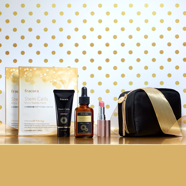 化粧水、美容液、乳液、クリーム、パックがひとつで完結する人気のオールインワンアイテム「ヒト幹細胞培養エキス タイムレスリペアワン」がセットされたスキンケアコフレ。保湿成分をたっぷりと配合し、大人の肌を細胞から潤いで満たします。ニードルパッチやエクソソーム原液とあわせて使うと、さらにハリ感がアップ。