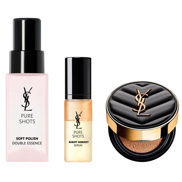 乾燥による肌トラブルをケアする「ピュアショット」シリーズがミニサイズで試せるうれしいセット。「同 ナイトセラム」は、つけて寝ると翌朝肌が見違えると話題の夜用美容液、「同 エッセンス ローション」は、キメを整えてつるんと滑らかな肌に導く化粧水。さらに、人気のクッションファンデーションのミニサイズもついてくる、名品ぞろいのコフレです。※11月3日、ECサイト、表参道フラッグシップブティックで先行発売。