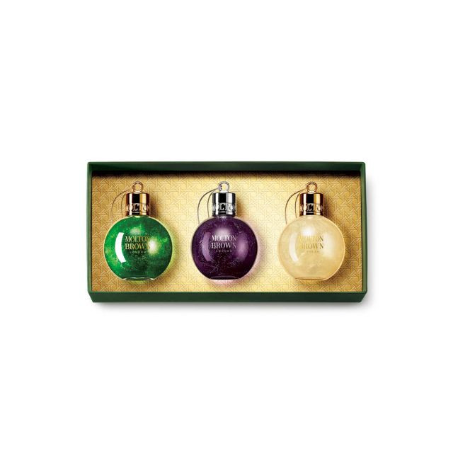 ブランド誕生50周年を迎えた今季のホリデーコレクションは、’70年代のノスタルジックなクリスマスの雰囲気を現代風にアレンジ。バス&シャワージェルの3種の香りのミニサイズ(各75ml)が、オーナメント形のボトルに変身!