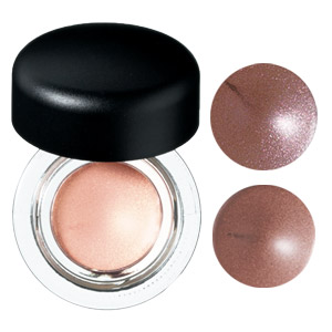 スムースにラインが描けるジェル状アイライナー。チルドはシャイニーなピンクゴールド。イッツ フィジカルは紫パール入り灰茶。