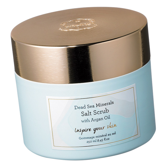 ミネラル豊富な死海の塩にアルガンオイルなど6種類の植物オイルを配合。マッサージしながらなじませ、角質オフとむくみケアを同時に。