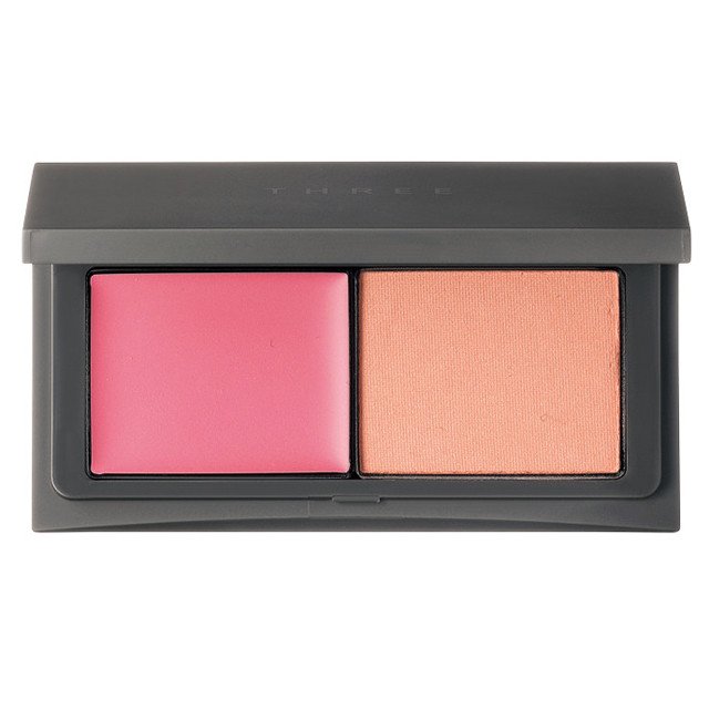 高発色クリームチーク(左)と艶やかなパウダーチーク(右)。ふたつを重ねることで自然なグラデーションが完成。