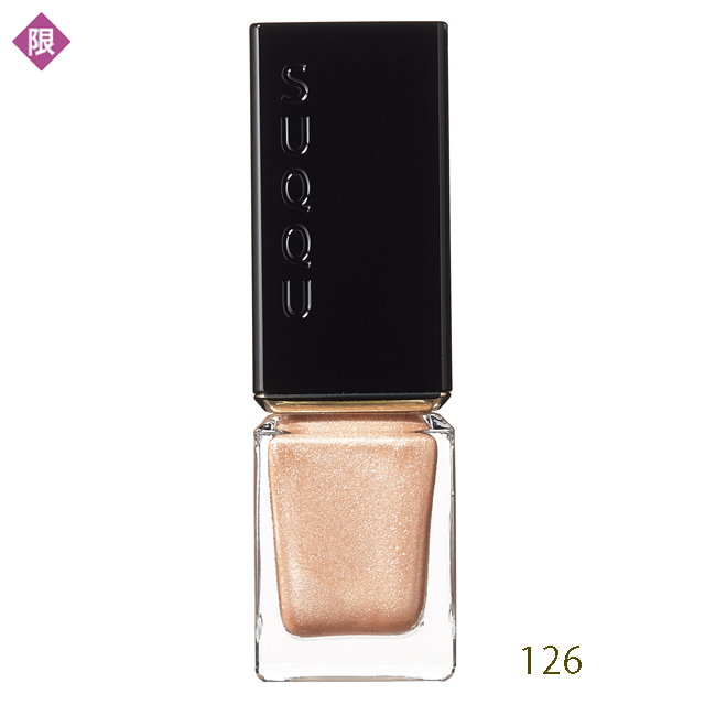 磨かれたガラスビーズのツヤと色をネイルで再現。126は金箔のようなメタリックゴールド、128は透け感たっぷりのピンクパール。