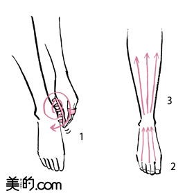 1 内側のくるぶしを、円を描くようにマッサージ。