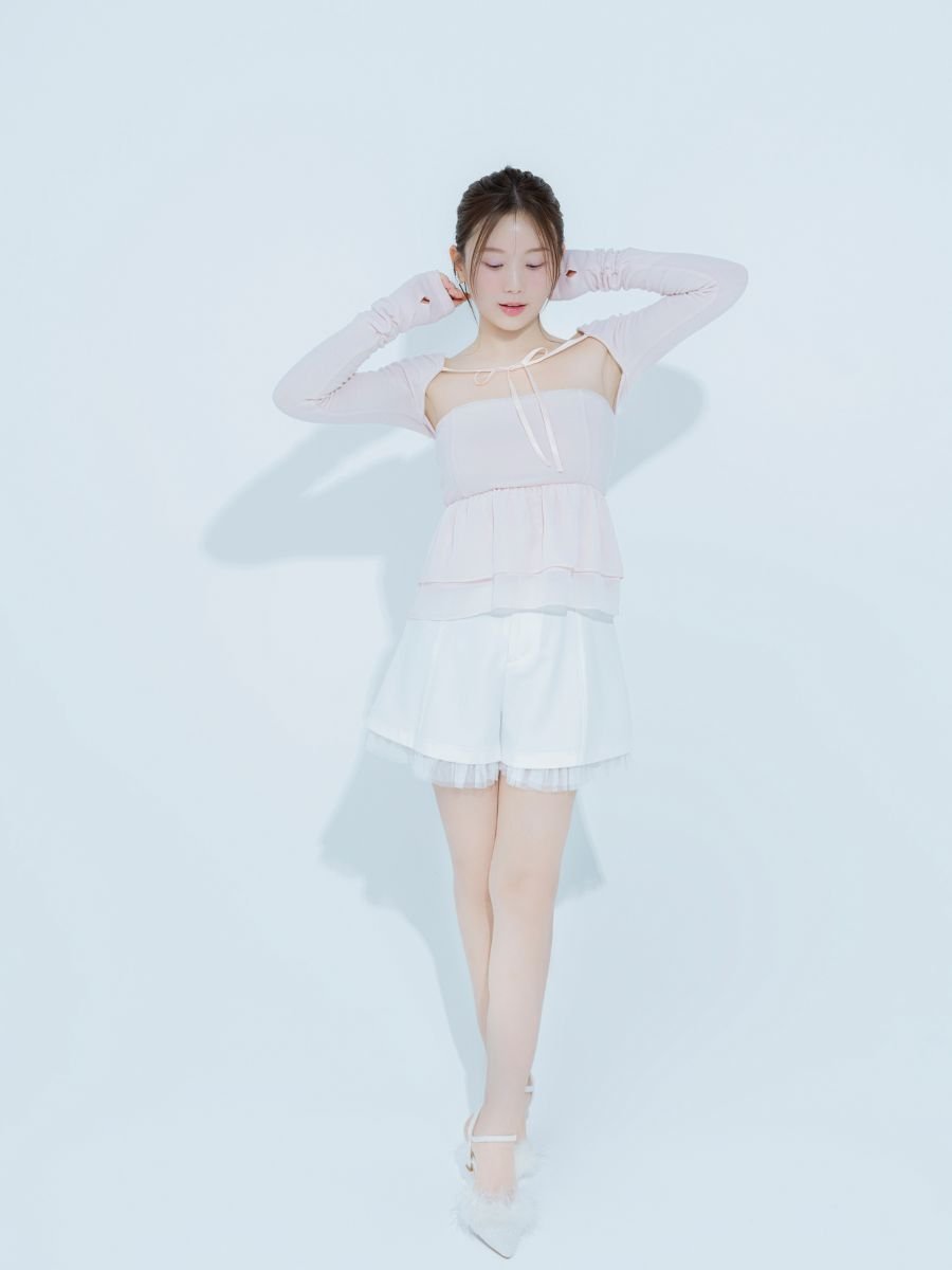 ボレロ&ベアトップ¥13,310(ハナ コリア〈ノットユアローズ〉)パンツ¥9,900(バロックジャパンリミテッド〈リエンダ〉)シューズ¥10,890(RANDA)右耳イヤーカフ¥13,200・左耳イヤーカフ¥11,000・右手フィンガーリング¥22,000(ete)左手リング¥79,200(ヴイエー ヴァンドーム青山 有楽町マルイ店〈ヴイエー ヴァンドーム青山〉)